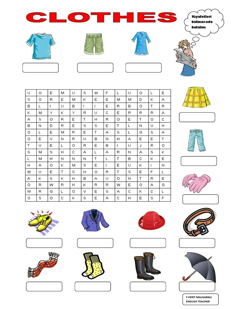Clothing Vocabulary crossword ESL worksheet by mafaldita2009